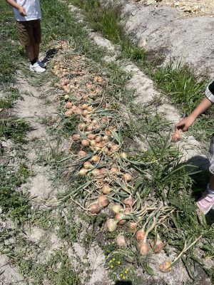 雨が降る直前に玉ねぎの収穫を子供とやって
