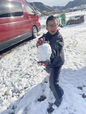寒波の影響であまり見なくなった雪景色に大はしゃぎな子供たち