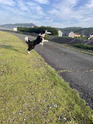 遊びたくて仕方がないのでフリスビーでいつも遊び倒しています(^^♪